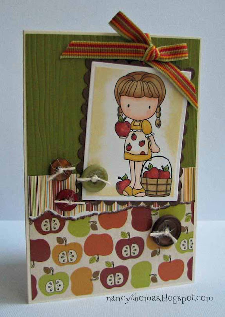 Today's fall themed card fits this week's All That Scraps Wednesdays Challenge to include fruit. I printed the digital image (C.C. Designs Sugarplums Apple Emma) onto