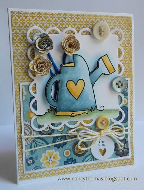 Copics: Watering Can-BG70, BG72, BG75, Y21, Y23, Y26; Grass-G40, G82, G85; Shadows-BG0000, BG10