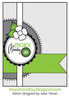 Since this card is for a boy I kept things simple which means to me no frou-frou. The stamp is Purple Onions Design Freckles. After I colored him up with Copic markers, I cut the image out with Spellbinders Nestabilities. The sentiment is from a Papertrey Ink stamp set which I stamped directly onto the image panel. The paper is from My Mind's Eye Gnome Sweet Gnome 6x6 pad and I generally followed this week's Mojo Monday (MOJO261) sketch for the layout.