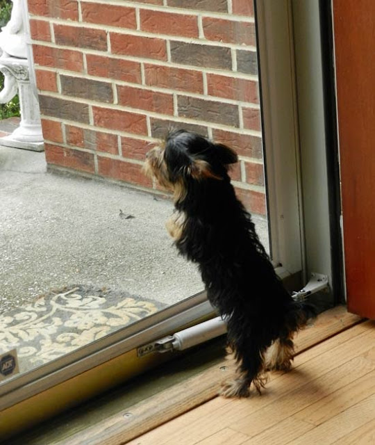 Here she was having a fit because her "Daddy" was outside without her: