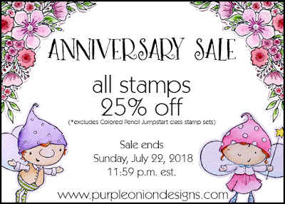 Good morning. I have another card using Purple Onion Designs stamps. It is my privilege to work for one of the nicest people in the industry. Michele has been in business for a remarkable 15 years and she is celebrating with a 25% off sale until July 22.