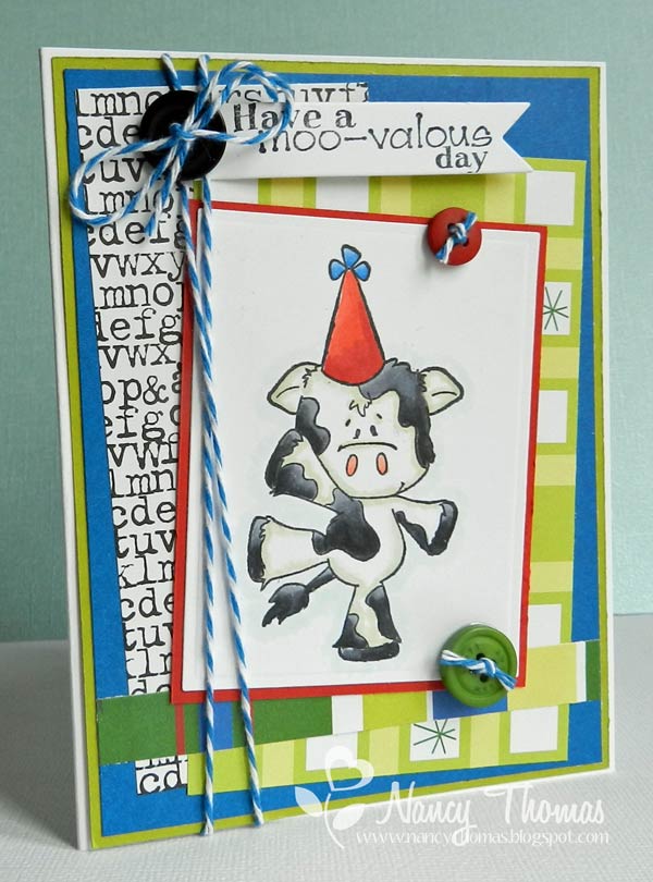 Copics: Cow-C3, C5, C7, C9; E81, W00, 0, R20, R22; Party Hat-R22, R24, R29, B21, B23, B26